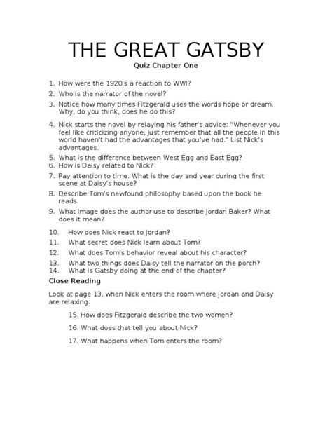 Download Answer Key For The Great Gatsby Reader